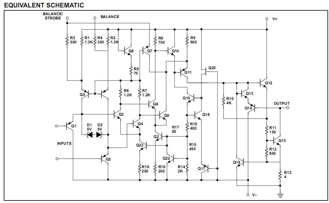 LM211D features: (1)Operates from single 3V supply (LM311B); (2)Maximum input bias current: 150nA (LM311—250nA); (3)Maximum offset current: 20nA (LM311—50nA); (4)Differential input voltage range: ±30V; (5)Power consumption: 135mW at ±15V; (6)High sensitivity—200V/mV; (7)Zero crossing detector.