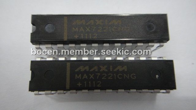MAX7221CNG features: (1)10MHz Serial Interface; (2)Individual LED Segment Control; (3)Decode/No-Decode Digit Selection; (4)150μA Low-Power Shutdown (Data Retained); (5)Digital and Analog Brightness Control; (6)Display Blanked on Power-Up; (7)Drive Common-Cathode LED Display; (8)Slew-Rate Limited Segment Drivers for Lower EMI (MAX7221); (9)SPI, QSPI, Microwire Serial Interface (MAX7221); (10)24-Pin DIP and SO Packages.